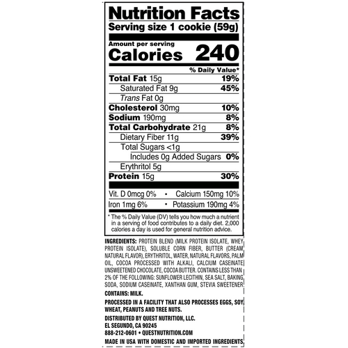 Category: 8 Besoins diététiques, Biscuits protéinés, Épicerie saine, Faible indice glycémique, Produits protéinés, Régime cétogène, Sans gluten, Sans sucre Tag:13 cacher, cookies protéinés, érythritol, halal, Keto, musculation, nutrition sportive, perte de poids, prise de masse, protéines, sans sucre, Snack, whey Marque : Quest Nutrition
