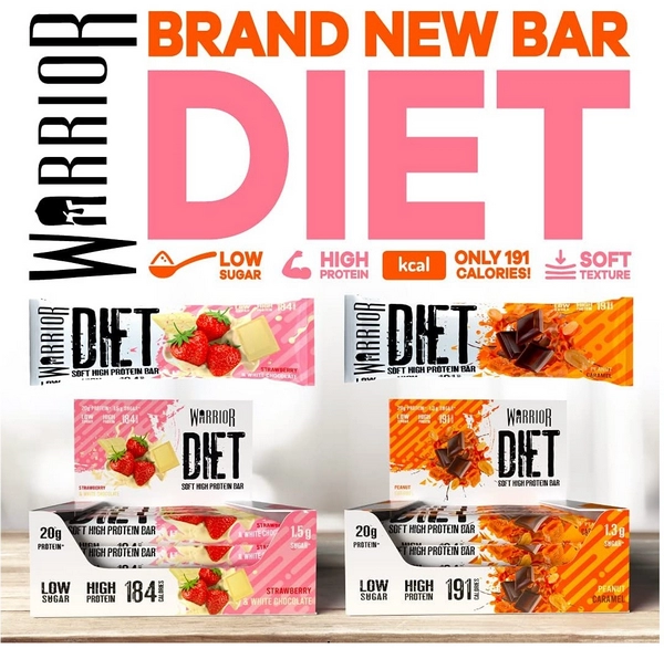 Warrior, Diet Protein Bar, Chocolat Blanc a la Fraise, Boite de 1 barre, 55 g